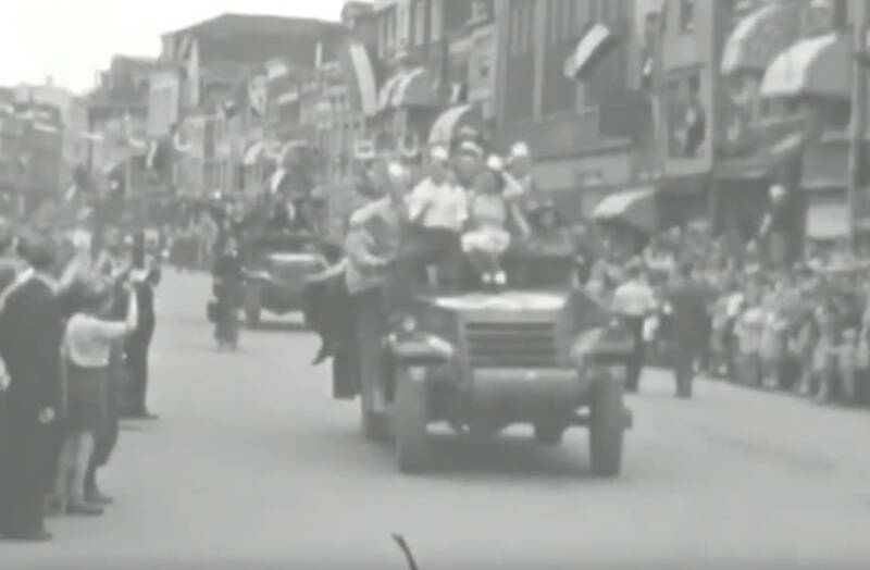 De bevrijdingsoptocht in 1945 ging langs het Bagijnhof. Foto: Regionaal Archief Dordrecht