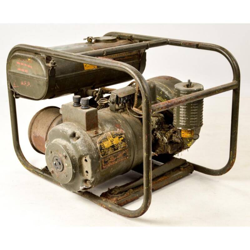GE-12-G US Army Signal Corp-generator.Motor gemaakt door Jacobsen fabrikant Racine Wisc. Generator gemaakt door Franklin Electric Bluffton Indiana. Genereert 300 watt 120-240 volt.
