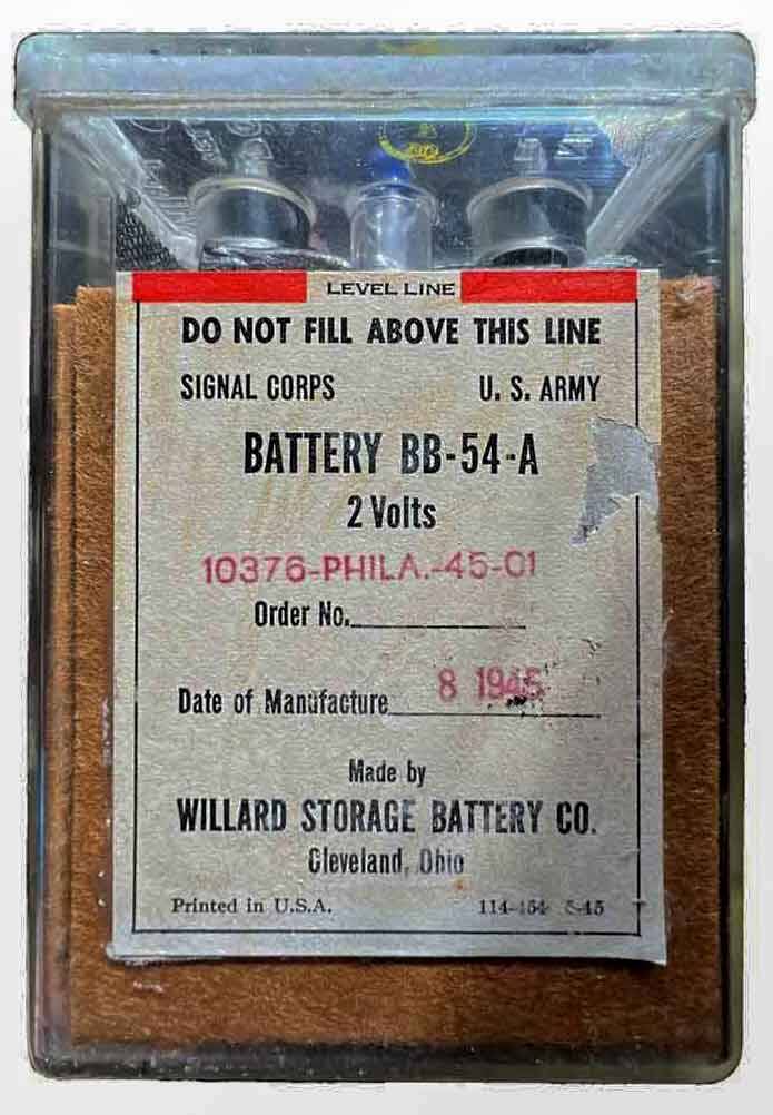 Voeding: 2-V batterij TM 11-859, verbruik 1,85 A.