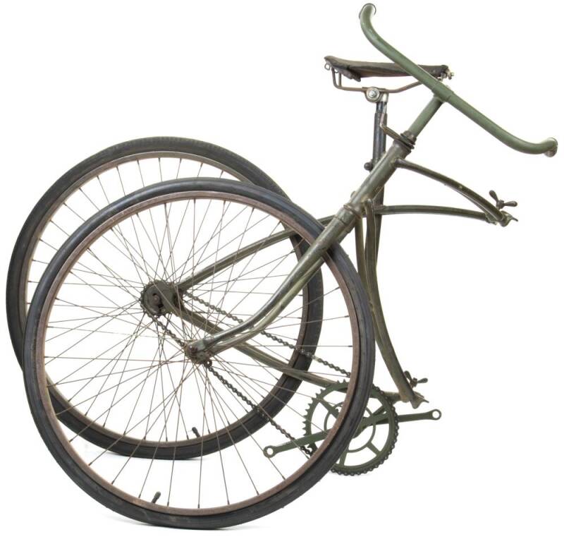 De vouwfiets voor de Britse parachutist, oftewel de BSA Airborne Folding Paratroopers Bicycle, is geen onbekende.
