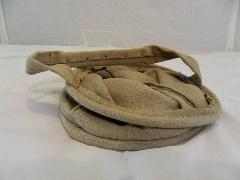 M-1941 Mounted/Paratrooper canteen cover. This is the model with extra reinforments. Cover is dated 1942 and made by G&S Co. Canteen is dated 1944 and made by P&F Co. On the cup is no date or manufacturer stampe.
