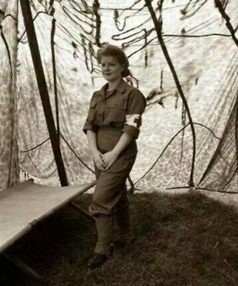 De eerste verpleegsters kwamen pas op 10 juni 44 in dienst in Frankrijk bij het 13e hosp. Het was het eerste veldhospitaal dat in Normandië arriveerde (7 juni 1944 voor uitrusting). De verpleegsters leefden in de kampen onder drastische omstandigheden met het absolute minimum. Vaak zijn er, met slechts een paar persoonlijke bezittingen en herenoutfits, voorraden uniformen opgeslagen in Engeland. Ze kregen hun vrouwelijke outfits pas laat of heel vaak via persoonlijke aankoop.